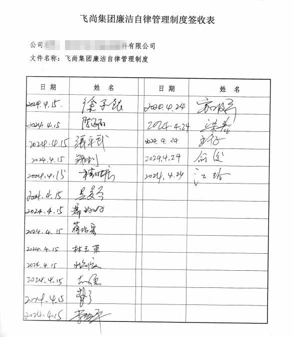 经由历程拟定清廉任务轨制,飞尚资料公司为清廉文明扶植奠基了坚固的根本,筑牢了清廉防地。