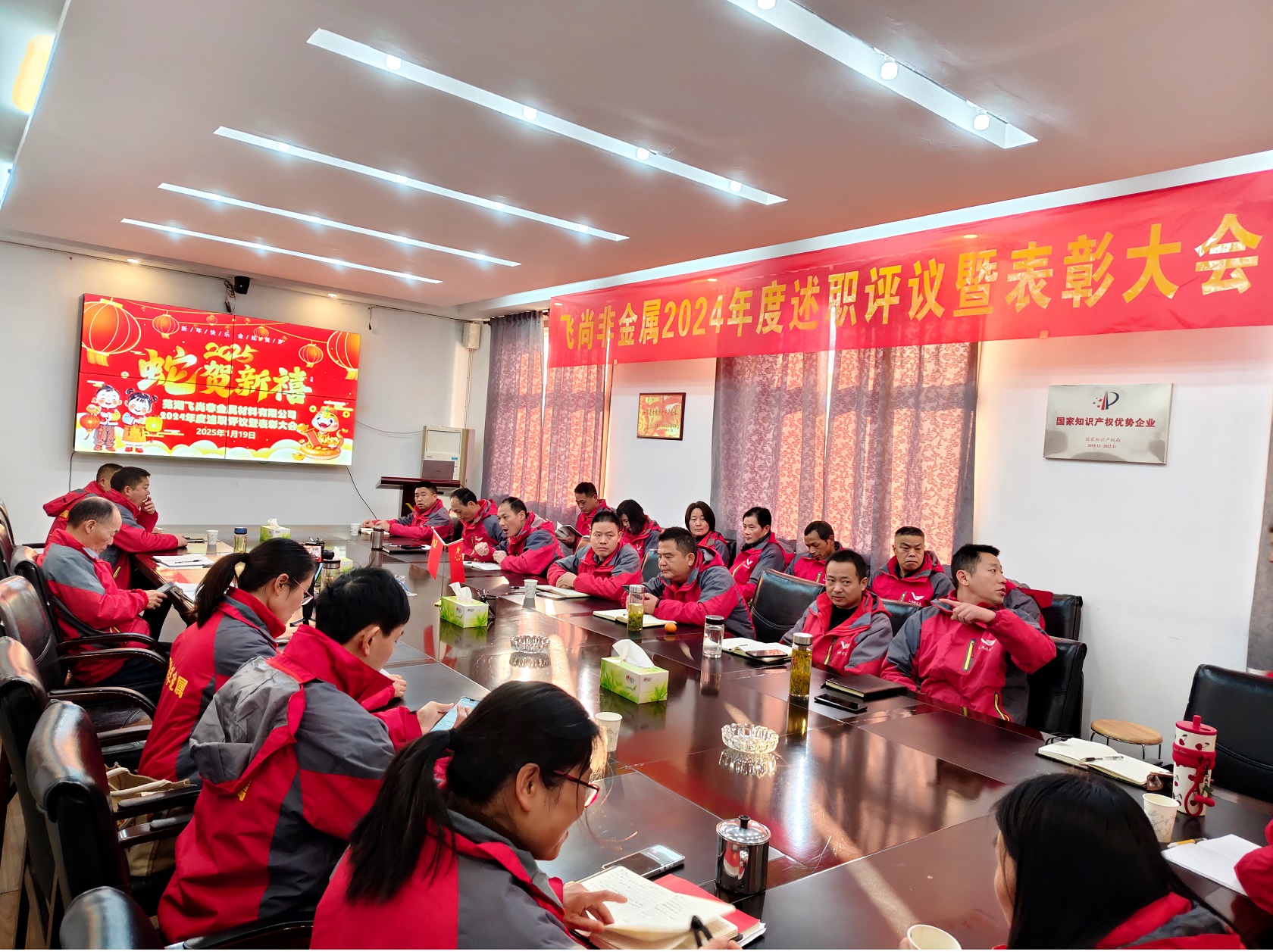 2025年1月19日上午,飞尚资料公司2024年度述职评断暨惩处大会在公司三楼集会室盛大停止,总部管理层及综上所述村干部、局布管理公司职员、取得进步老前辈小我意味及市场大的普通员工参加了示威,配合回首曩昔一年的任务功效与经历,瞻望将来成长的夸姣远景。